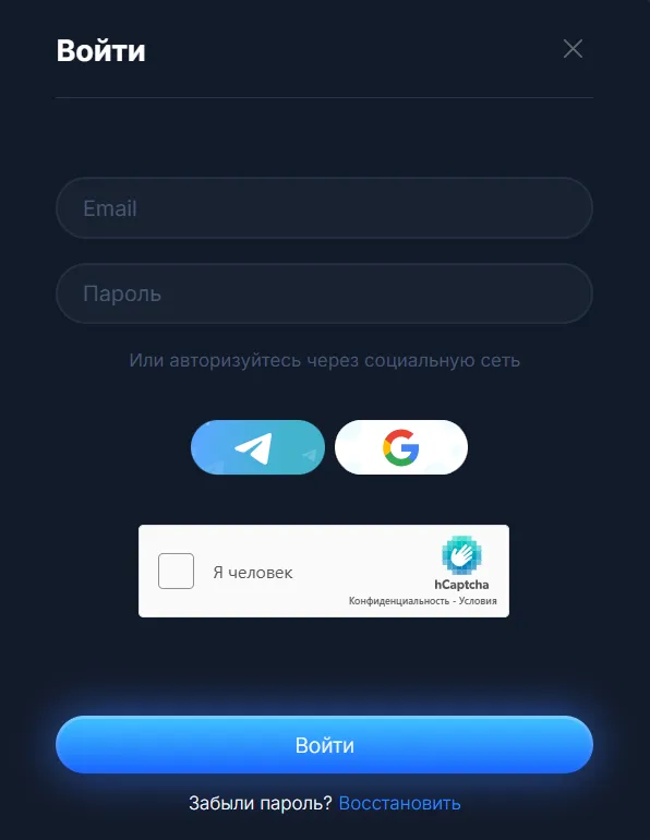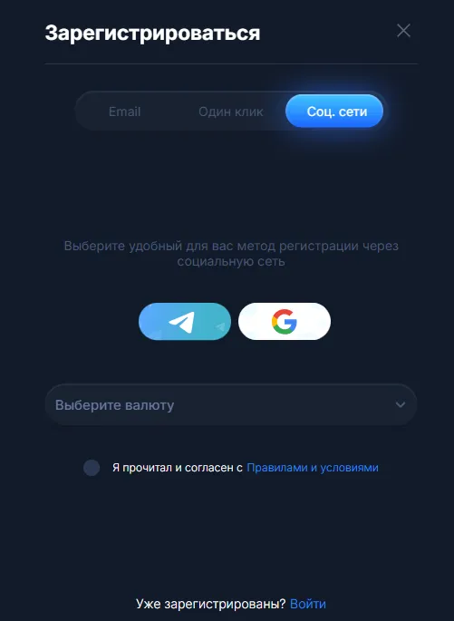 - Нажмите на кнопку «Вход» рядом с кнопкой регистрации